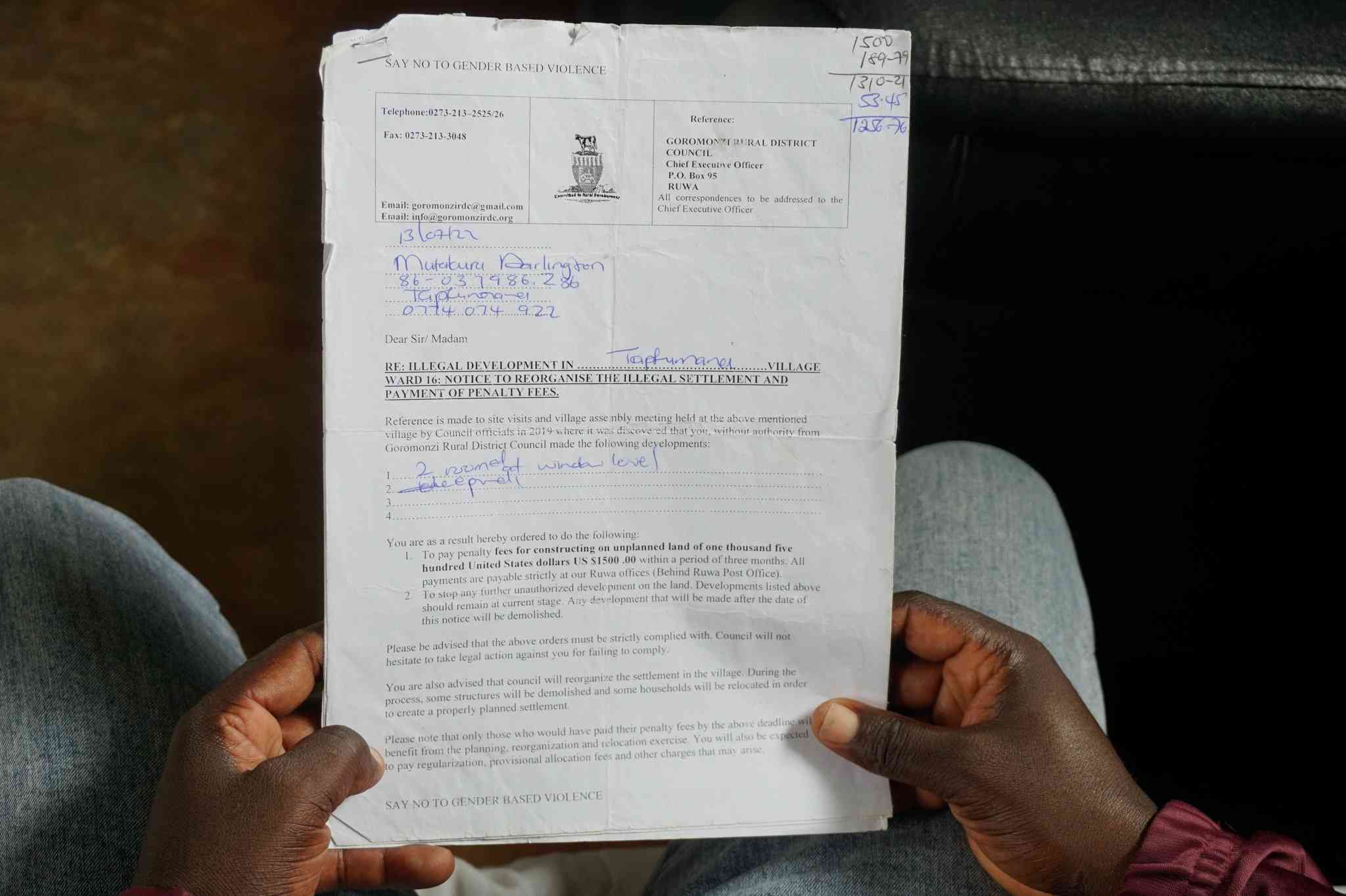 Darlington Mutakura’s eyes welled up with tears as he read the official notice from the local council. US$1,500. That’s what they wanted him to pay. A fine for acquiring land through traditional leaders, a practice that had been passed down through generations.