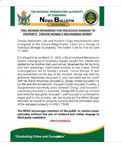 Tanaka Mafukidze (24) and Prudent Chipo Musimike (25) are trading in their party hats for courtroom attire as they face charges of malicious damage to property. Their highly anticipated trial is set for June 11, 2025, at the Harare Magistrates’ Court.