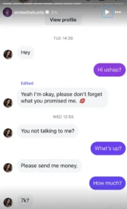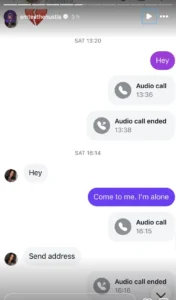 The scandal broke when screenshots of Emtee’s conversations surfaced online, purportedly shared by his wife, Nicole Kendall Ndawo. In the messages, Emtee — whose real name is Mthembeni Ndevu — chats with @sugababie_, an OnlyFans model known for adult content. The conversation starts casually, with Emtee inviting her over to “chill” whenever she’s free.