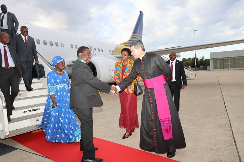 President Emmerson Mnangagwa has arrived in Rome, Italy, ahead of a significant visit to the Vatican where he is slated to meet with Pope Leo XIV. Upon landing at Ciampino International Airport, the President was welcomed by Zimbabwe’s ambassador to the Vatican, Dr. Sekai Nzenza, alongside Zimbabwe’s ambassador to Italy, Mietani Chauke, and representatives from the Vatican.