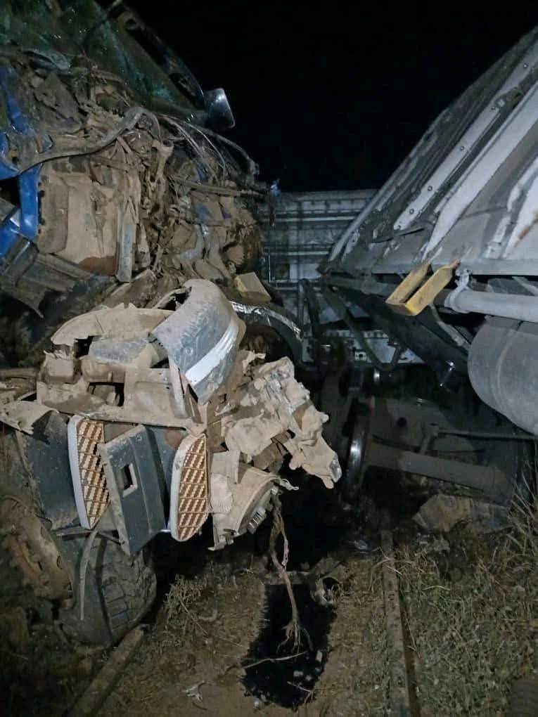 A harrowing incident unfolded at a rail crossing in Kadoma last night when a sand-laden lorry careened out of control and slammed into a passing train. The drama played out at around 11:50 PM, with eyewitnesses recounting how the driver and his passenger made a split-second decision to jump to safety just before the collision.