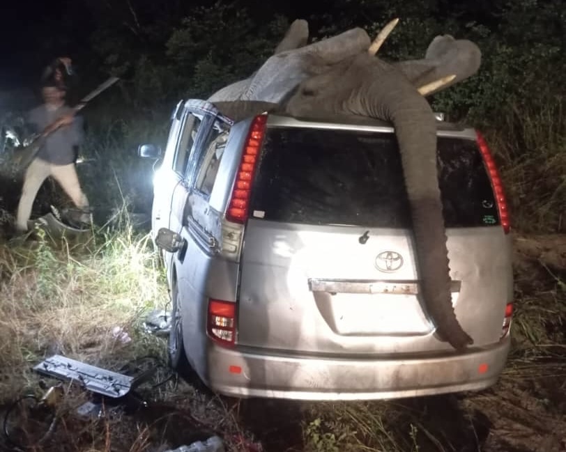 A devastating incident occurred on Kazungula Road, near Victoria Falls, when a Toyota Isis collided with a sub-adult elephant. The impact was severe, causing the elephant to land on the car’s roof. Unfortunately, one passenger died, and five others were injured.